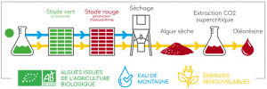 Notons que la formation d’une membrane épaisse en réaction face au stress complexifie le processus d’extraction de l’astaxanthine.