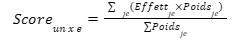 - Le calcul du score par axe se fait par moyenne pondérée :